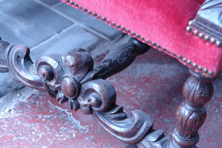 D 268 - canapé + two chairs Renaissance 1900 oak heavy sculpted