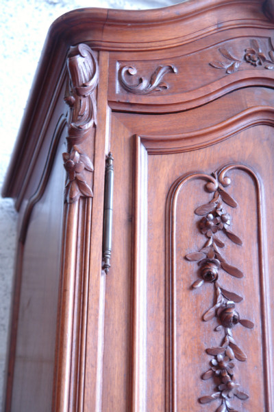 C 619 - Bedroom set Louis XV Walnut Wardrobe Three doors Bed